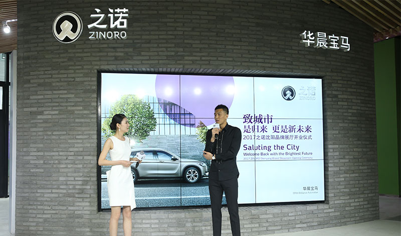 (华晨宝马新能源车品牌管理部总监马霆先生与之诺60H荣誉车主郭艾伦合影)